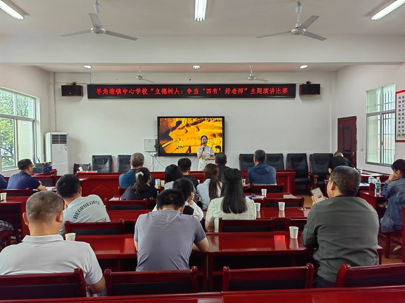 本网讯 6月28日,羊角塘镇中心学校成功举行了“立德树人、争当‘四有’好老师”主题演讲比赛,辖区内各单位书记、校长、园长、党建专干、师德标兵等40余人参加。 上午9点,演讲比赛正式开始,来自该中心校辖区内6个单位的8名选手,先后登台演讲。选手们有的讲述师德标兵的感人故事,有的讴歌教学骨干的敬业精神,有的赞美教师团队的合作意识,有的弘扬一线教师的奉献精神……感人肺腑,催人奋进,参与活动的老师们感觉受到了一次灵魂的洗礼。 该中心校校长王云德对比赛给予高度评价,认为准备充分,办得成功,达到了预期的效果,为全镇师德师风建设年再一次吹响了前进的号角。王云德对全体教师提出了殷切希望,他要求全体教师进一步提升思想政治素质,牢固树立正确的世界观、人生观和价值观,勤奋工作,立德树人,争做“四有”好老师,为培养德智体美劳全面发展的社会主义建设者和接班人而不懈奋斗。 据了解,在此次演讲比赛中,卢瑶、李梦婷两位老师分别荣获一等奖,方圆、夏馨馨等6位老师分别荣获二等奖。