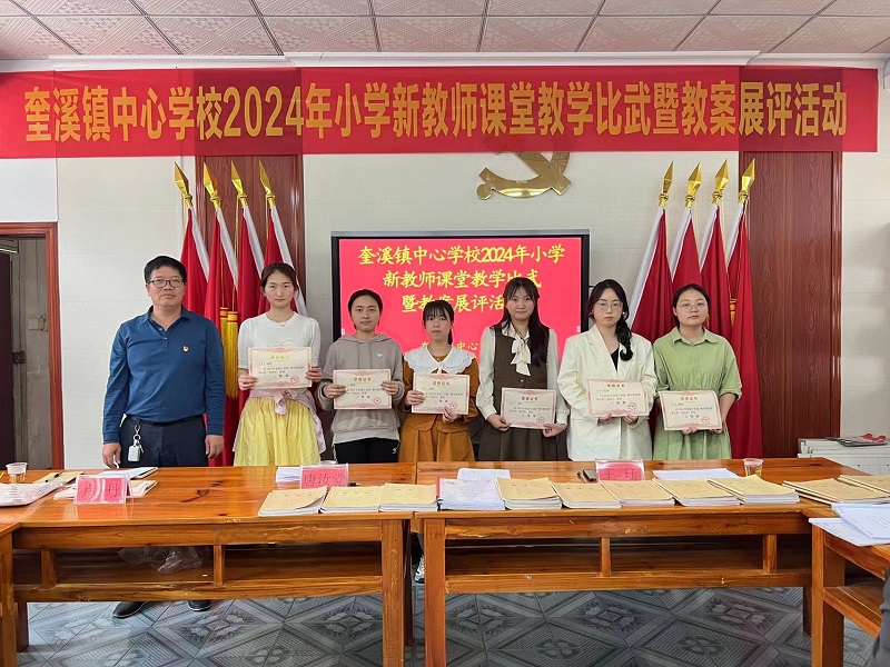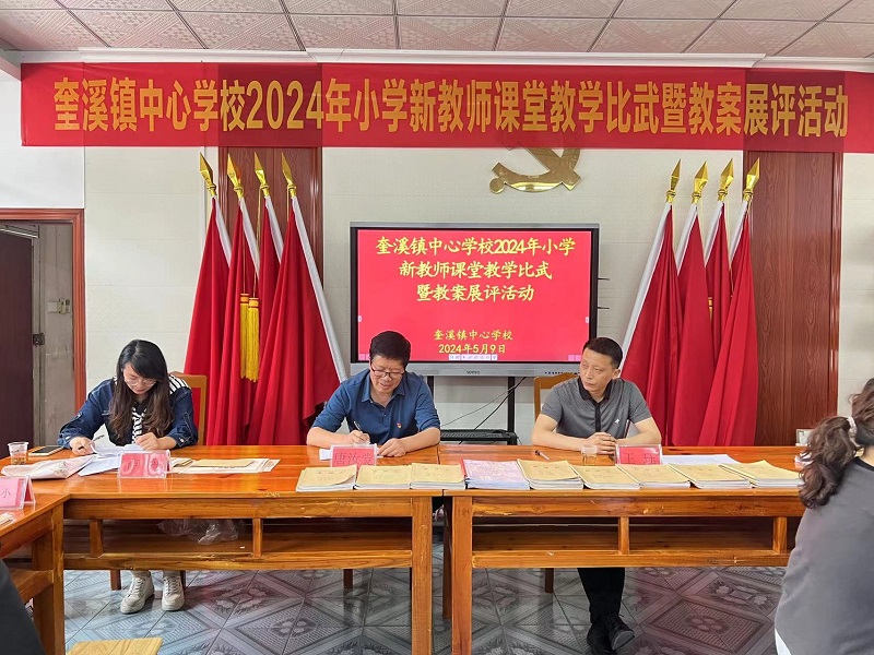 本网讯 5月9日,奎溪镇中心学校开展2024年小学新教师课堂教学比武暨教案展评活动。本次活动由中心学校教学副校长王珏主持。 4月份,近两年入职的32名新教师参加了各校预赛活动,其中6名新教师脱颖而出参加了最终的决赛。新教师们十分珍惜这次展现自我、提高自我的良机,他们利用课余时间努力钻研教材、精心设计教学环节,制作精美的课件,把它作为自己素质提升的一大契机。 课堂上,参赛教师个个风姿卓越、语言优美、设计巧妙,紧跟新课改步伐,老师精心准备,大胆创新,各显其能,充分展示了新教师扎实的基本功和应有的专业素养。 教案展评过程中,评委组一本一本翻阅,一项一项记录,做好检查反馈。从教案检查的整体情况来看,青年教师们都能够围绕新课程标准,精心设计教学过程,能够准确把握教学的重难点,能重视学生学习的个体差异,以学定教,并能结合学情因材施。 评委老师对上课老师的课堂教学作出精彩点评,为新教师们提了许多专业的指导意见。最终经过评委们的打分和综合考评,刘时哲获一等奖,龚夏蒙、陈谢芹获二等奖,颜芳琴、张吴婷、曾明月获三等奖。 王珏表示,此次活动本着“比武即学习,过程即培训,参与即成长”的精神,全体教师应关注课堂、研究课堂、关注学生、研究学法,建立新的教学观、师生观,全面提升教育教学质量。 中心学校校长唐汝党作总结讲话,他强调学校发展的核心是教师发展,中心学校组织各类教学竞赛活动的目的,就是不断加强教师队伍建设,促进教师专业发展。教学比武的目的,不是让课堂变成一堂堂“优秀”的表演课,而是为了能让教师们从这一过程中有所收获,并能将收获到的经验、知识落实到日常的常规教学中。最后,他鼓励新教师要专业立身,珍惜每一次专业成长的机会,以精雕细琢的精神,着力打造立学课堂、高效课堂、精品课堂,以赛促研、以研促教,让自己早日成长为奎溪镇教育教学的中坚力量。