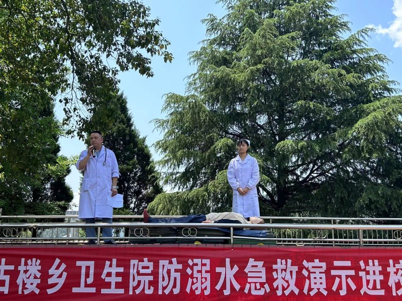 本网讯 4月26日,古楼乡卫生院到古楼乡中学及完小开展防溺水急救演示进校园活动。 演练现场,古楼乡卫生院院长刘爽为主讲人,讲解了防溺水注意事项、实施营救过程、溺水抢救要点等知识,演示了如何抢救溺水者的标准动作。学生们踊跃参加,在耐心指导下,学习了正确的救援方法。 古楼乡中心学校校长尹立芳表示:通过开展防溺水救生演练,学生们不仅掌握了防溺水“七不两会”知识,而且进一步增强了师生的安全意识和自我保护意识,切实增强了自救互救的能力,在心底筑起了一道防溺水的安全防护墙。后续,古楼中心学校将一如既往抓牢抓实防溺水教育,确保学生生命安全。