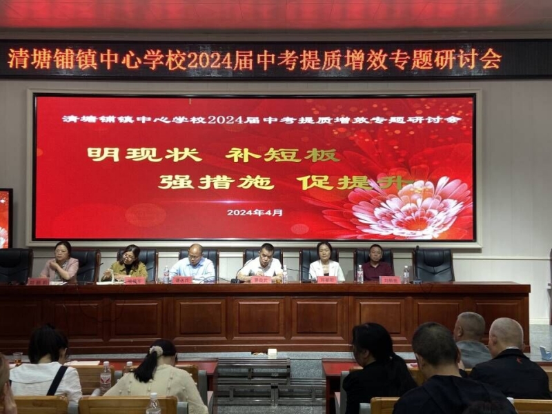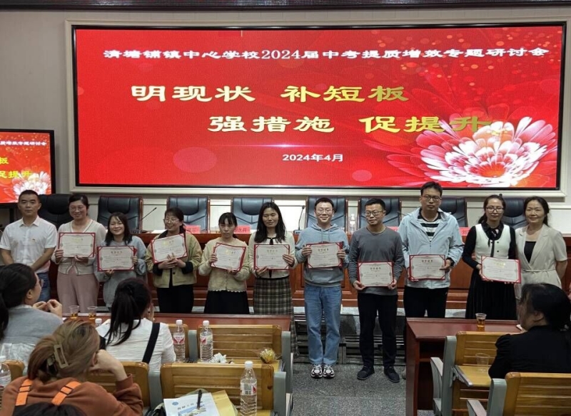 本网讯 4月24日晚,清塘铺镇中心学校在中学多功能报告厅召开2024届中考提质增效研讨会暨毕业学科复习备考劳动技能竞赛表彰大会。中心学校机关人员、中学行政及全体毕业学科教师参加,会议由中心学校副校长喻拥军主持。 会上,12位毕业班班主任从班情、学情、备考措施等方面进行了汇报,9位毕业学科教师代表从学科进度、复习安排、中考目标、提质举措等方面进行了交流。校长刘丽莉汇报了前期备考工作,深刻分析了现状,谈了后期的举措与打算,并代表中学表态。随后,中心学校党总支副书记邓朝阳对劳动技能竞赛的9堂课进行精彩点评,宣布获奖名单并颁奖。中心学校校长夏益武在总结中指出,中考质量是学校的生命线,中考事关学生的理想与前途,事关每一个家庭的希望,事关社会的发展和稳定。 他要求全体毕业班老师:一要坚持“五育”并举,全面提高教育教学质量;二要严明纪律,认真做好招生工作;三要落实安全管理,确保师生平安。他勉励全体教师以本次质量提质专题研讨会为契机,立足本职,团结协作,聚精会神抓管理,一心一意提质量,才能不辜负全镇人民的期望,才能维护清塘教育的尊严。