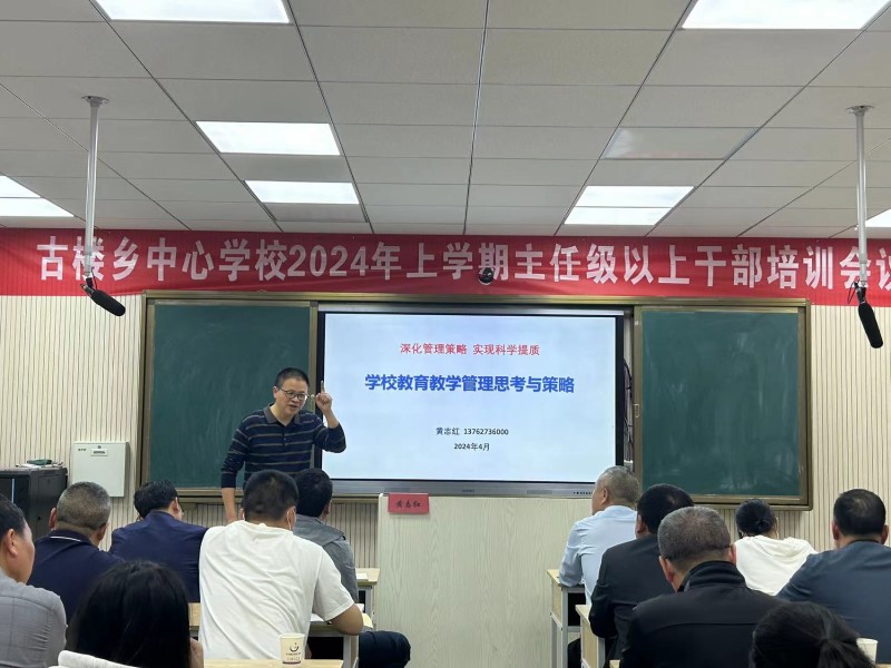 本网讯 4月17日晚,古楼乡中心学校在古楼乡中学云录播室召开校本培训主任级干部培训会,县教育局基教股黄志红应邀参加并了专题讲座,全乡教育教学管理人员共23人参与培训。 黄志红以《学校教育教学管理思考与策略》为题,从管理的含义、管理者核心能力六项训练、教育的思维与方法、教育教学管理思考与策略四个方面,结合亲身经历与周边学校实际情况与全体参会人员进行了详细的交流分析。其内容涵盖提升管理者的能力、学校工作计划、工作分配、教师如何上好课、与学生如何有效沟通等多个方面。内容条分缕析,理论与实践相结合,既生动深刻,又令人深思。 该中心学校校长尹立芳对此次培训进行总结。他认为,此次培训为全乡教学管理人员梳理了工作思路,指明了工作方向;同时尹立芳就后阶段工作做了部署和安排。他提出:全体人员今后应严守安全底线,制定防守责任清单;抓好教学质量生命线;全面加强师德师风建设,加强党建建设,做到以心育人、以德育人、以人格育人格,脚踏实地做好每一步,为学生全面发展贡献力量。