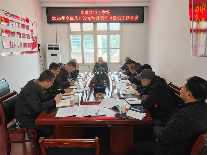本网讯 3月11日,仙溪镇中心学校在机关三楼会议室召开全面从严治党暨师德师风建设工作会议,中心学校全体人员、辖区内各校园党支部书记、校长、纪检监察员、园长参加。会议由仙溪镇中心学校党总支书记、校长刘慈军主持。 会上,刘慈军分享了师德师风教育典型案例,传达了全省教育系统全面从严治党工作视频会议及县局相关会议精神,作了题为《切实加强师德师风建设,努力维护教育良好形象》的师德师风报告。紧接着,组织大家学习了《全县教育系统“师德师风建设年”活动实施方案》《关于对违规收取班费问题进行专项整治的通知》《仙溪镇中心学校2024年“师德师风建设年”活动实施方案》等文件,重点解读了集中整治的“十个负面清单”。随后,对开学以来各校园教育教学、安全工作进行了全面细致的总结,并部署了近期主要任务。 会议要求,各学校、幼儿园一要认真分析,深刻总结当前师德师风建设问题。二要落实措施,突出重点,狠抓全镇师德师风建设。三要强化领导,建立完善师德师风建设长效机制。 会议强调,一是要认真落实安化县教育局关于全面从严治党工作的各项决策部署,坚定不移推进全面从严治党任务清单。二是要持续巩固全面从严治党取得的新成效、主动适应全面从严治党当前的新形势、要努力开创全面从严治党的新局面,学校班子成员严格落实全面从严治党工作责任。