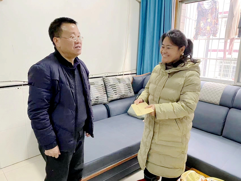 本网讯 1月25日,县教育工会主席廖双初、县教育局机关工会主席仇志辉在梅城镇中心学校工会主席刘志灵的陪同下进校入户,慰问梅城镇芙蓉学校教学一线省特级教师、优秀教师、市先进教育工作者陈碧霞。