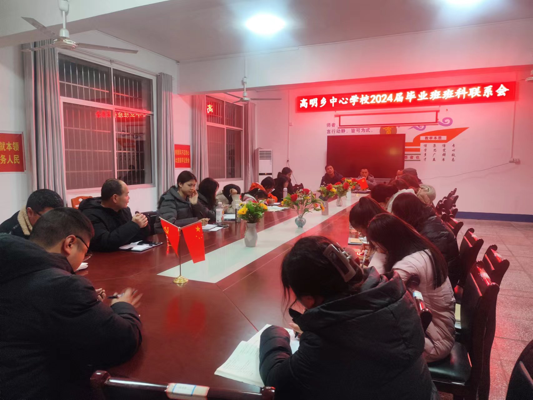 本网讯 1月4日晚,高明乡中心学校在乡中学会议室召开高明乡中学2024届毕业班班科联系会,中心学校全体班子成员、中学校长、教导主任、毕业班(八、九年级)统考科目的任课教师共计28人参加了会议,会议由中心学校副校长王桂初主持。 会上中学教导主任龙腾安就本届毕业班学生现状、学校采取的措施、毕业班后期工作安排、当前存在的困难等内容进行了发言。中心学校副校长王桂初宣布了中心学校班子成员联校包班人员名单,对下阶段毕业班工作的提出了建议和要求。中学校长高飞跃对毕业班工作进行了具体安排和部署。 中心学校党支部书记、校长冯治球做总结讲话,他提醒全体毕业班教师务必要明确目标,高度关注中考风向标,充分发扬团队精神,圆满完成计划目标。