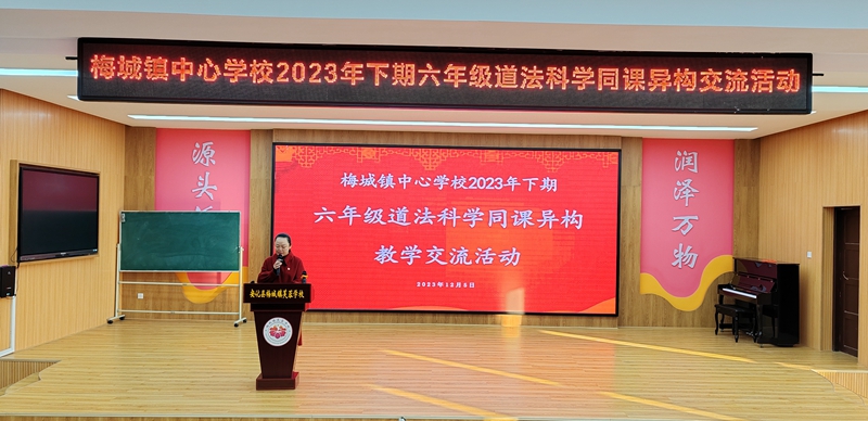 本网讯 高山仰止,方知才疏,三人同行,觉左右为师。12月5日,梅城镇中心学校2023年下期六年级道法科学同课异构教学交流活动在梅城镇芙蓉学校举行。全镇各校六年级道法、科学教师及部分成长教师参加了本次活动,梅城镇中心学校副校长毛设贤、教务主任王团莅临指导。 梅城镇芙蓉学校党支部书记、校长彭海鹏在热情洋溢的欢迎词中拉开了本次活动的帷幕。听课环节中,道法、科学等近40位教师分别走进六年级教室,认真聆听了来自紫云完小的夏艳平老师和龚学文老师、芙蓉学校罗广飞与肖颖老师执教的六年级上册道法《我们是未成年人》及六年级上册科学《推动社会发展的印刷术》。评课交流活动中,授课教师深入浅出地说课——各校评课中心发言人作各抒己见、中肯评价——学科领头人作教学专题分享——领导作总结提升,教育思想的碰撞和交流,让人受益匪浅。 王团在总结发言中呼吁各校:不忘初心,坚持党的教育方针,坚持把“立德树人”摆在教育的首位;就学校思政队伍的建设提出了新的要求和希望。