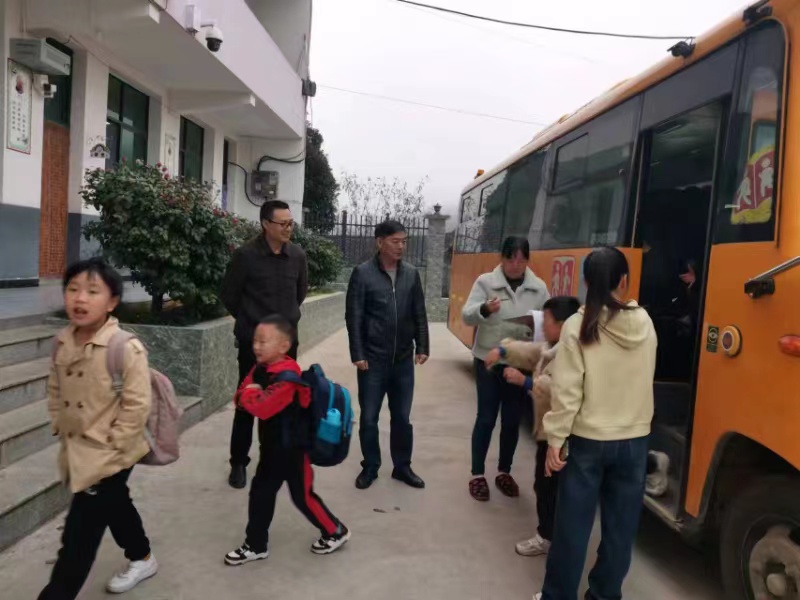 本网讯 11月7日,渠江镇中心学校校长陈代亮,副校长夏新平、邓清太在晏家教学点督查校车工作,乘坐第一趟校车接学生上学。 “校长爷爷,早上好,你又来送我们上学了。”“校长爷爷,我现在已经不晕车了,今天我要挨着你坐。”看到熟悉的三位“爷爷”,学生热情地打着招呼。对于晏家教学点的学生来说,这三位不是高高在上的“领导”,而是彼此相熟的“好朋友”。 这份相熟,源自渠江镇中心学校对于校车安全管理工作的重视。为了抓好校车管理工作,中心学校安排负责安全管理的副校长夏新平兼任校车专干,充实校车安全管理力量;中心学校坚持每周对校车进行督查四次,陈代亮、夏新平坚持每周查两次第一趟车,安全专干张志兵每周查车两次。 据悉,晏家教学点是全县最大的教学点,全校共有学生174人(含幼儿),学生来源于城华、大仓、晏家、大塘四村,辐射面积接近全镇的三分之一。渠江镇因地域分散,常住人口少,无客运班车运行。交通不便,学生正常上下学都很为难。全镇只有晏家教学点配备了一辆46座位的校车,中心学校与政府、县校车办、校车公司等多方协调,共同发力,克服重重困难,力保校车正常安全运营。