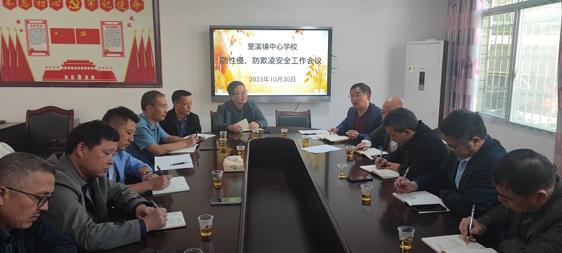 本网讯 10月30日,奎溪镇中心学校在会议室召开防性侵防欺凌安全工作会议,中心学校全体机关人员,各校校长、园长、总务主任和安全专干参加会议。 会上,中心学校副校长陈喜元传达了县教育局安全工作会议精神,组织与会人员学习了《益阳市教育系统坚决预防严厉打击性侵害学生八条硬措施》《安化县教育局未成年人保护工作学校责任清单》《关于预防校园性侵害、性骚扰的9条规定》,并结合本镇实际,对怎样理清安全管理工作思路以及如何抓好安全管理工作做出详实的要求和部署。 中心学校校长唐汝党强调,各校要牢固树立安全发展理念,加强法治教育,严格落实防性侵“六个一”活动和防欺凌“十个一”活动,真正把防欺凌和防性侵工作放在心上,抓在手上,落实在行动上。