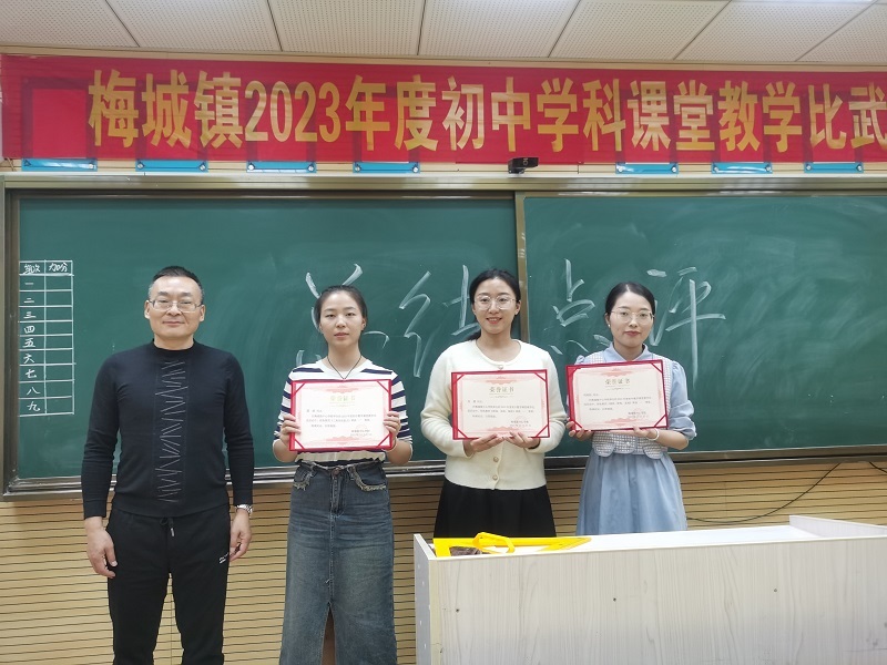 本网讯 10月17日,梅城镇中心学校2023年度初中数学课堂教学比武活动在梅城镇中学录播室隆重举行。中心学校党总支书记、校长贺荻亲临现场,全程参与教学比武活动。 参与本次教学比武的教师共有6位,分别是梅城镇中学刘纯钰、罗银环、吴敏,东华中学龚妹、肖倩,栗林学校龚含婧。每位青年教师都用扎实、有趣、高效的教学诠释了新课标的教育理念,尽显个人教学风采。 赛课结束后,梅城镇中学的赵赛荣老师从教学的若干个教学维度,结合当下新课程理念,围绕学生核心素养,进行了全面的课例点评与教学指导,与会者受益匪浅。最后,贺获、毛设贤分别为每一位获奖选手颁发荣誉证书,与参赛选手合影留念。 这次教学比武活动,为梅城镇青年教师探索教学新理念、新思想、新方法提供了良好的沟通和交流平台,给老师们许多启示和思考,提高了老师们积极参加教学改革的热情和教学水平。