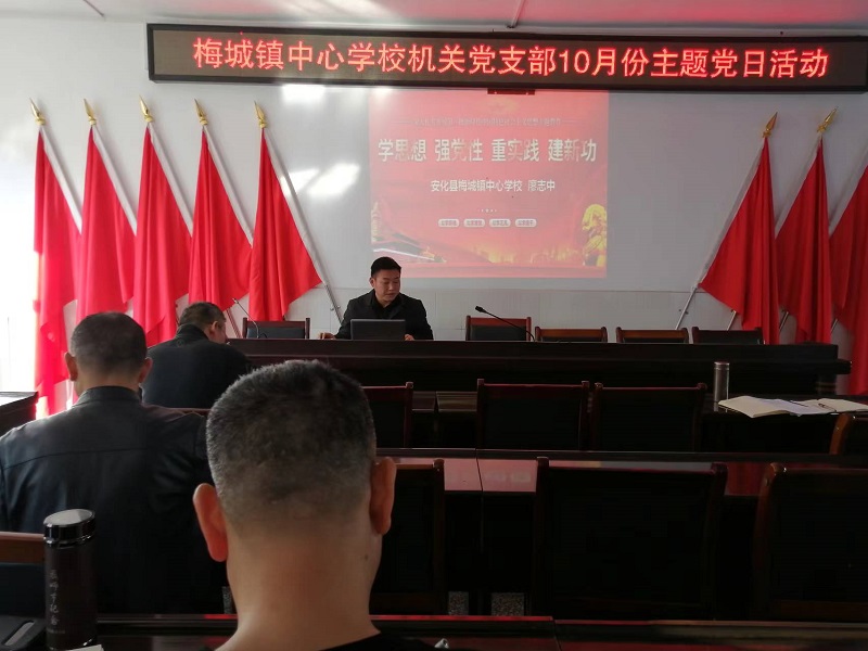 本网讯 10月16日,梅城镇中心学校机关党支部举行10月份主题党日活动,机关支部委员廖志中上第三季度党课,分享主题《深入扎实开展第二批学习贯彻习近平新时代中国特色社会主义思想主题教育》。 廖志中深刻阐述第二批主题教育学习的意义、时间、要求、目标任务、具体措施、具体做法,同时就扎实推进教育强国建设结合自己的理解谈了认识,对学习与工作提出了具体的建议与要求。 中心学校党总支书记、校长贺荻讲话表示,全体党员教师要牢牢把握主题教育的重大意义,结合工作实际,努力开展自我反思,认真进行自我改进,力求实现新的突破。同时就加快推进梅城教育强镇建设指出,要认真贯彻落实立德树人的育人方针,坚持五育并举,全面提高教育治理体系与治理能力现代化水平;要加大乡村小规模建设力度,在经费支持、队伍建设、办学条件改善等方面给予田心与栗林更多的倾斜,缩小城乡差距,努力让每个孩子都能享有公平而有质量的教育;要全面推进集团化办园,努力提高全镇学前教育办学水平,确保全镇教育高质量发展,实现梅城从教育大镇到教育强镇新的跨越。 学习会上,中心学校党总支副书记刘志灵通报了9月份党员积分情况与学习强国学习情况,组织观看了教育片《坚决做到“两个维护”》《路线决定方向 组织凝聚力量》。