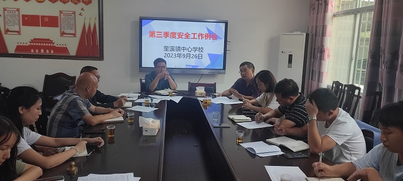 本网讯 9月26日下午,奎溪镇中心学校组织召开第三季度安全工作会议,各校(园)长、安全专干及校外培训机构负责人等参加本次会议,会议由中心学校办公室主任卢丹主持。 会上,各校(园)长签订并向中心学校校长递交了2023-2024年安全责任书。接着,分管安全的副校长陈喜元全面总结了本学期以来各单位在安全管理方面所付出的努力以及取得的各项成绩,同时有针对性地指出了存在的各种问题;并就即将来临的中秋、国庆长假期间对学生的禁毒反诈、交通安全、食品安全、消防安全、防溺水、防性侵等各项管理作出详实的部署与安排。 最后由中心学校校长唐汝党发言,他强调安全管理理应成为一项常态化、系统性的工程,必须根据根植一种动态有效的校园文化,必须建立一种科学完备的管理体制,必须创设人管、物管、技管的良好氛围。只有这样,把安全管理的防性侵、防溺水、防食物中毒等各项工作做细、做实、做好,才能确保学校和谐,师生平安。