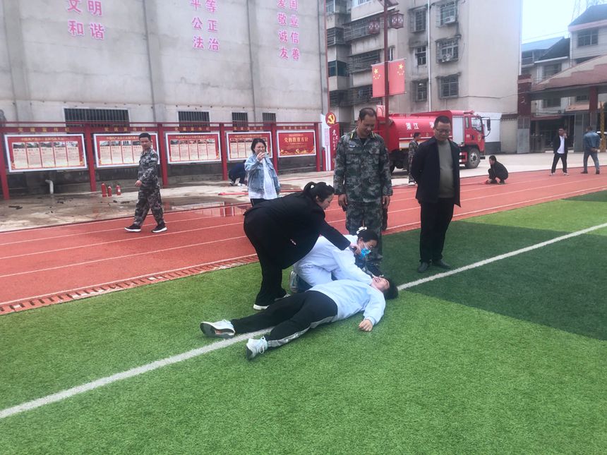 渠江镇应急管理办公室干部手把手教大家使用灭火器、水枪等消防器材;渠江医院医生现场进行心肺复苏紧急抢救示范;学校安全专干对学生进行防溺水安全知识教育。演练结束后,渠江镇学安委各成员单位负责人、中心学校分管安全干部对该校进行例行安全隐患排查。