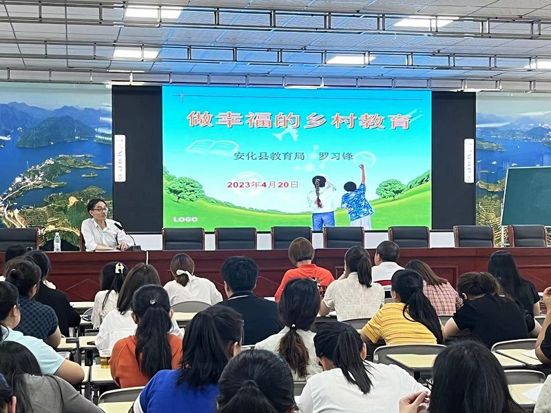 本网迅 4月20日晚,南金乡中心学校特邀县教育局办公室副主任罗习锋到南金乡完小,作题为《做幸福的乡村教育》的培训活动。 罗习锋结合自身经历和感悟,分别从我的乡村教育观;教师成长的五个阶段;教师的四种基本素质等四个维度进行阐述。勉励青年教师一定要争取多上公开课,不断地修正,不断地纠正自己。强调教师成长规律是经验+反思=成长,没有反思的经验只是过去了的经验,唯有基于反思的经验才能带来观念和行动的改进等。与会教师认真倾听,并做好学习笔记。 在互动交流环节中,罗习锋耐心为学员答疑。面对教师如何合理安排时间;如何更好地进行班级管理;如何激发潜能生等问题,都能给予自己独到见解,让老师们获益良多。 大家纷纷表示希望能多参加这样的培训,将今日所学所感内化于心、外化于行,以饱满 的热情、用智慧的策略,努力塑造成一个学习型、爱心型、智慧型、魅力型的新时代的引路人!