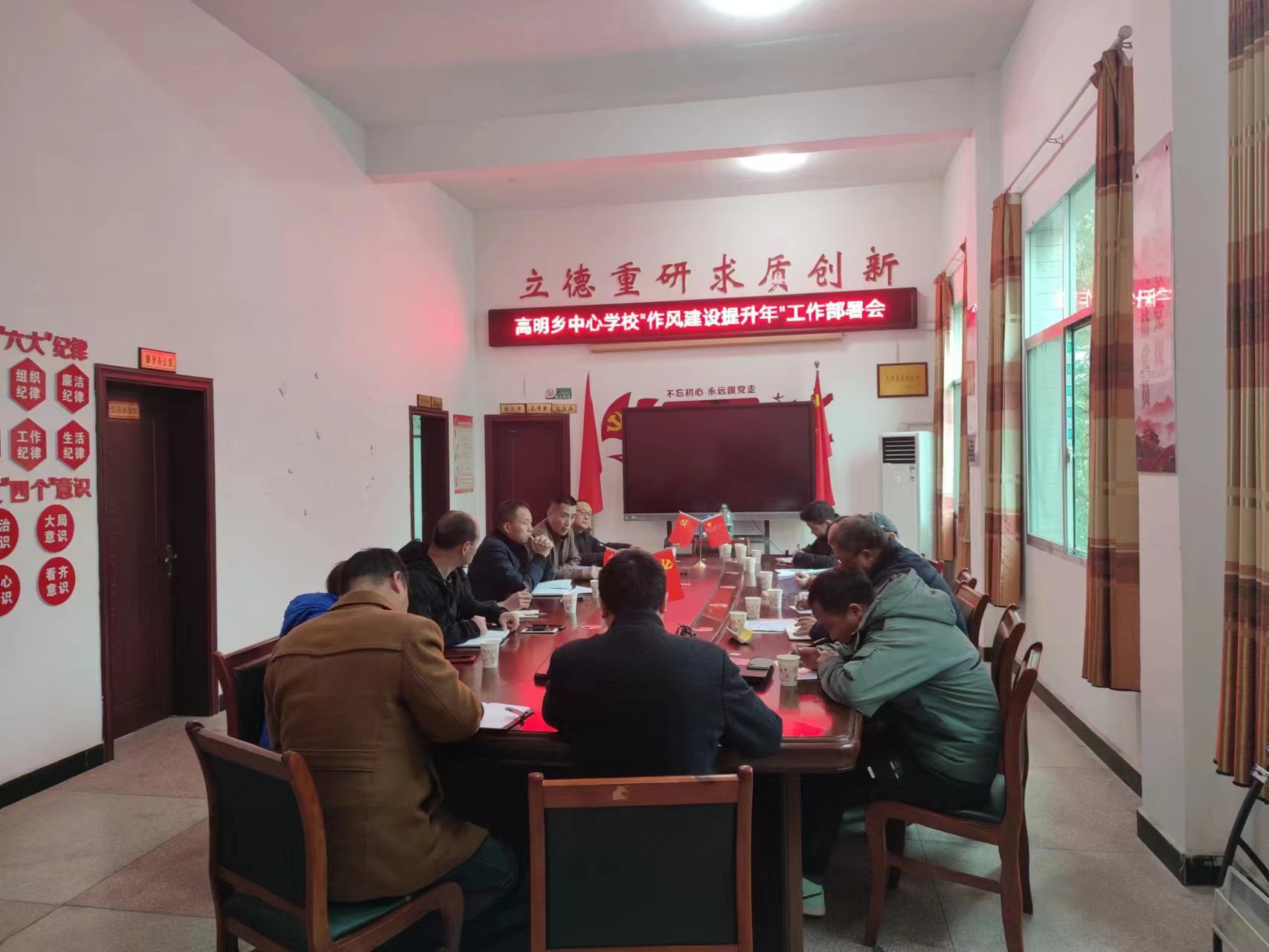本网讯 3月27日下午,高明乡中心学校召开“作风建设提升年”工作部署会,该中心学校行政人员、各校校长、中心园园长、各单位总务主任参加会议,会议由中心学校党支部书记、校长冯治球主持。 会上,中心学校纪检监察负责人周放弹组织学习了《安化县教育局“作风建设提升年”活动实施方案》,并结合学校实际情况对教职员工上下班纪律、财务纪律、人情歪风、酒驾等方面进行了强调。会议通过了《高明乡中心学校“作风建设提升年”活动实施方案》,明确了该中心学校2023年作风提升工作目标、工作领导机构、整治重点、工作步骤和工作要求。 会议强调,各学校要以本次作风建设活动为契机,广泛宣传发动,坚持问题导向,有则改之,无则加勉。要在全体教职员工中掀起一股自省、自改、自律,互相监督,互相评比的作风提升热潮。中心学校将继续加强巡查,严格执纪问责,维护教育良好的形象。
