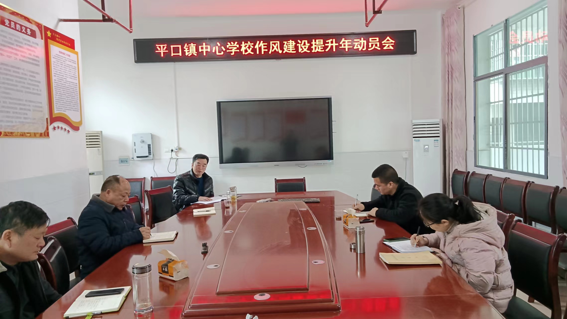 本网讯 3月20日上午,平口镇中心学校组织召开“作风建设提升年”动员会,该中心学校行政人员参加会议。 会上,与会人员学习了《安化县教育局“作风建设提升年”活动实施方案》,成立了以校长张花群为组长的平口镇中心学校作风建设提升年活动领导小组。同时,会议就作风建设提升年活动的指导思想、主要原则、目标任务、具体措施等进行了明确。 会议指出,全体党员、干部、教职工要大力弘扬勤学风气,不断加强队伍思想作风建设;要开展好“师德师风集中整顿月”活动,大力弘扬干事兴业风气、清廉高雅风气;要着力加强生活作风建设,解决热点焦点问题,全面推进行风建设。 为增强“作风建设提升年”活动的实效性,会议制定了平口镇中心学校“作风建设提升年”活动督查表,并向全体教职工发放意见征求表,广泛听取教职员工对中心学校总支及行政班子的工作意见和建议,以便改善中心学校工作作风,改进工作方法。