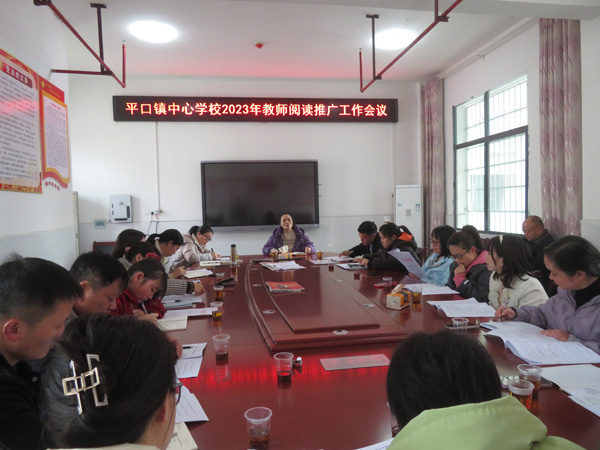 会上,平口镇中心学校组织成立了以校长张花群为组长的阅读推广工作领导小组和以教导主任夏伟为总推广人的阅读推广工作小组,并组织学习了《平口镇中心学校2023年教师阅读推广方案》。