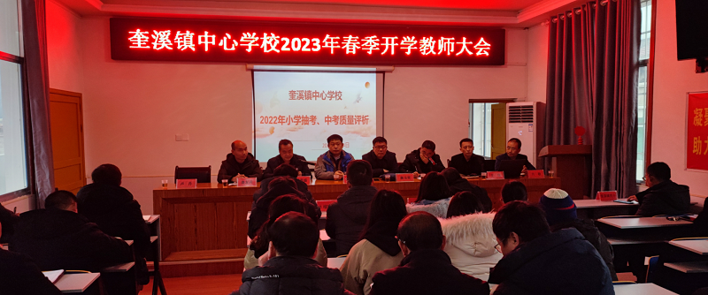 本网讯 2月4日上午,奎溪镇中心学校召开2023年春季开学工作会议。全镇中小学校、幼儿园全体教职工参加会议。镇党委委员、人大主席李伟明出席会议。中心学校副校长陈喜元主持会议。 中心学校教导主任唐友兵作了题为《师德,兴校之魂》的师德师风专题辅导报告。中心学校教学副校长王珏就2022年中考、抽考质量进行了详细的分析,找出不足,补齐短板,对本学年教育教学工作进行了安排,为全镇教师的教育教学工作指明方向,并对2022年教学质量先进个人进行了表彰。 中心学校校长唐汝党在“回望过往增信心、踔厉奋发再提质”开学工作报告上,回顾了2022年可圈可点的成绩,并对2023年提出了美好愿景。他明确2023年为“教育教学质量提升年”,要求大家铭记教育初心,深耕教育情怀,拉高标杆,全面对标再出发,用目标统一思想、检验初心,用目标展示担当、倒逼落实,用目标凝聚人心、积聚力量,迎着目标冲、奔着目标拼、盯着目标干,做好开头、创好氛围,发挥集体智慧,革故鼎新,艰苦奋斗, 谱写奎溪教育新篇章!