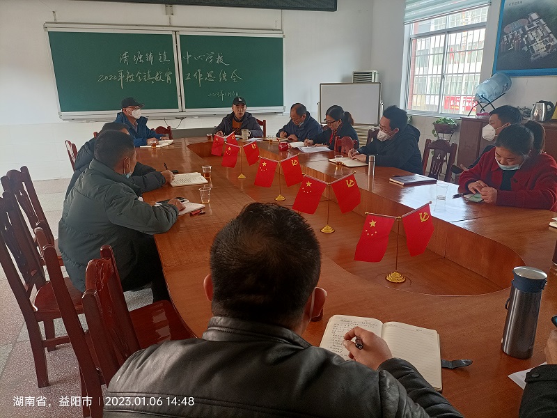 本网讯 1月6日下午,清塘铺镇中心学校在机关小会议室召开2022年度教育工作总结会,中心学校机关所有人员及下属各校校长共计18人参加会议。 会议由中心学校督学吴河清主持。中心学校校长夏益武作了题为《脚踏实地,凝心聚力谋发展;众志成城,踔厉奋发创佳绩》的年度工作总结报告,从党建、安全、质量、师德师风、财务等方面对2022年全镇教育教学工作作了全方位的总结。他指出,2022年度,全镇各校及全体教职员工上下齐心、无私奉献,在县教育局和镇党委政府的正确领导下,紧紧围绕“努力办好人民满意的清塘教育, 维护清塘教育尊严”的工作目标,圆满完成了全年各项工作任务,取得了可喜的成绩,2023年,将继续凝心聚力,开启清塘教育新征程。 会上,中心学校副校长谭送兵就寒假期间的校园安全工作作了再强调,并组织学习了县教育局下发的《关于近期几起涉酒驾交通违法行为的处理情况通报》(安教通【2022】106号);中心学校副校长喻拥军对全镇2022年度的教学教研工作作了简要的总结,同时要求各校一定要提醒师生在寒假期间认真做好春季开学后迎接2022年下学期期末考试的准备工作。