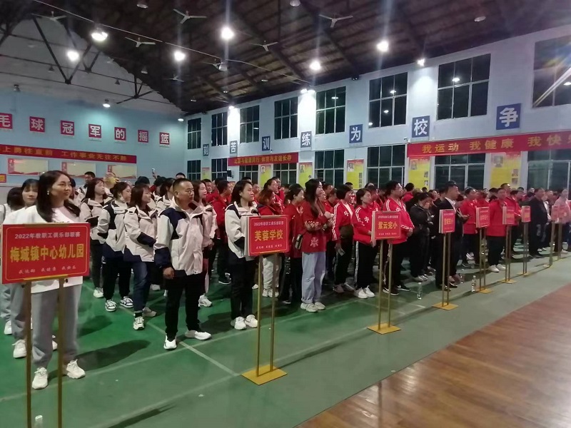 本网讯 11月10日,梅城镇中心学校教师俱乐部2022年联赛开幕式在梅城镇完小举行。梅城镇中心学校下属11支代表队和全体裁判员参加,各单位教师积极响应。 开幕式由梅城镇中心学校总支副书记刘志灵主持,梅城镇中心学校工会主席潘玖中致开幕词,潘玖中在致辞中倡导健康生活理念,推进全体教师健身运动,促进教师养成体育锻炼的习惯,更好地为教育教学工作服务。 总裁判长李曦东宣布竞赛规则,介绍了本次联赛比赛项目:气排球、羽毛球男女混合双打、羽毛球男子单打、羽毛球女子单打等。梅城镇中心学校总支书记、校长贺荻宣布运动会开幕。此刻的九红羽校灯火辉煌,羽毛球男女混双联赛精彩纷呈,迎来阵阵喝彩声。