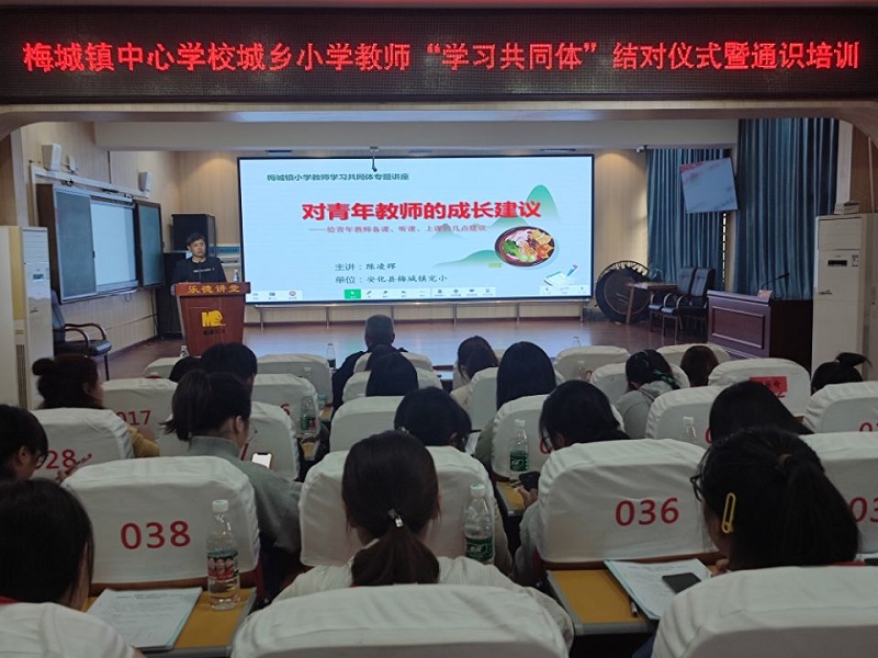本网讯 “师傅要不吝赐教,徒弟要虚心好学,尽快成为下一届师傅。”10月22日上午,梅城镇中心学校教学副校长毛设贤在该镇青蓝工程师徒结对仪式面对20对师徒们衷心说道。 上午8:30,仪式正式启动,毛设贤组织学习《梅城镇中心学校“教师学习共同体”工作实施方案》,宣布师徒结对名单,师徒签订结对协议。在热烈的掌声,领导为本次导师团队颁发聘书并师徒留影纪念。 培训上,梅城镇完小教科室主任陈凌辉作《给青年教师成长的几点建议》专题发言。他给青年教师成长“五字经”:志、爱、勤、谦、创。要求他们立恒志,讲师爱,勤学、勤思、勤动,虚心好学,不依葫芦画瓢有创新。备课中基于核心素养备好目标、教材与学情,将学生、教材和教师自己多维整合。 师徒交流环节中,大家相互畅所欲言,师傅们一致要求青年教师在工作中应踏实工作,爱岗敬业,勤学好问,多学习优秀老教师的工作经验,结合自身,形成属于自己的教育风格。徒弟们也表现出拜师的诚恳,表态将尊重师傅,虚心请教,以育人为核心,工作上尽心、尽责。不盲目追求形式,注重教学反思,积累教学经验,快速成长。