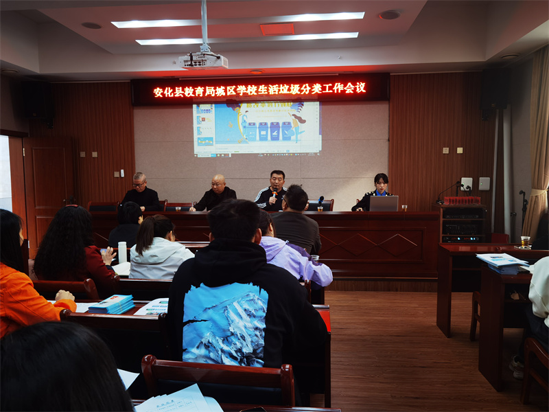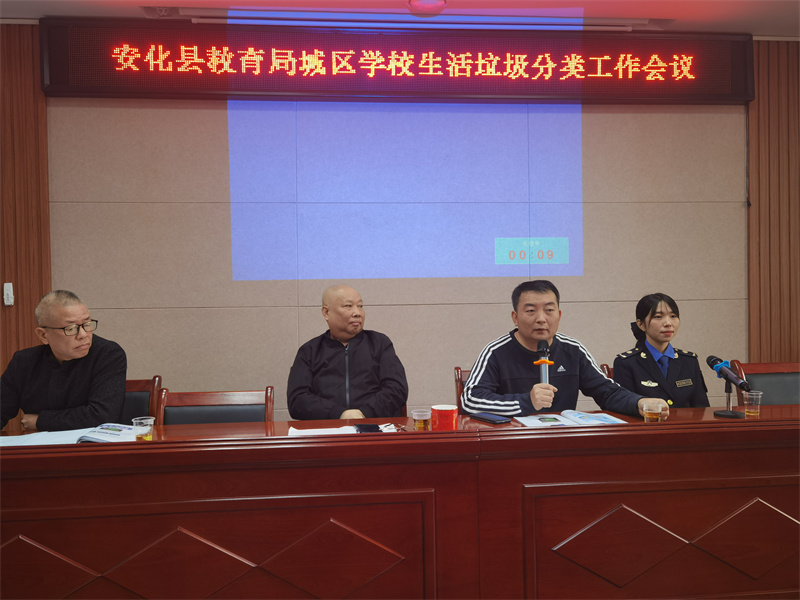 本网讯 10月12日上午,安化县教育局城区学校生活垃圾分类工作会议在东坪镇中心学校召开,县城市管理和综合执法局市容管理股股长刘新跃、办公室副主任王长慧等4人及城区学校创建专干30余人参加会议。会议由东坪镇中心学校创文巩卫负责人谭亮东主持。 王长慧组织观看了关于垃圾分类管理的讲解视频,对垃圾分类管理的重要性、紧迫性作了分析和讲解,并介绍了近年来安化县对于生活垃圾分类管理的一些做法及取得的成效。 刘新跃从生活垃圾分类的方法、垃圾桶的设置、分类工作的宣传、垃圾的回收等等八个方面,对学校生活垃圾分类工作进行了详细的培训,并对学校生活垃圾分类工作提出了具体的要求。他指出:“各个学校要因地制宜,克服困难,千方百计落实完成好生活垃圾分类工作。这项工作从短期看,是为了安化人民生活水平的提高与经济的发展,从长远看,是为了安化的绿水青山和子孙后代的幸福,任重而道远。” 东坪镇中心学校副校长彭学时最后强调:各个学校一是要提高认识,提高站位,要把生活垃圾分类工作作为当前一项重要的工作落实好;二是要向学校领导做好汇报工作,要多形式多渠道开展好宣传与培训;三是要结合学校德育主题活动,提高此项工作的知晓率,尽可能地得到全社会更多人的支持与参与;四是要结合学校实践活动,创新性地开展工作,让更多的学生参与到此项活动中来,并尽可能地对社会产生更大的有益的影响。(通讯员:杨志红)