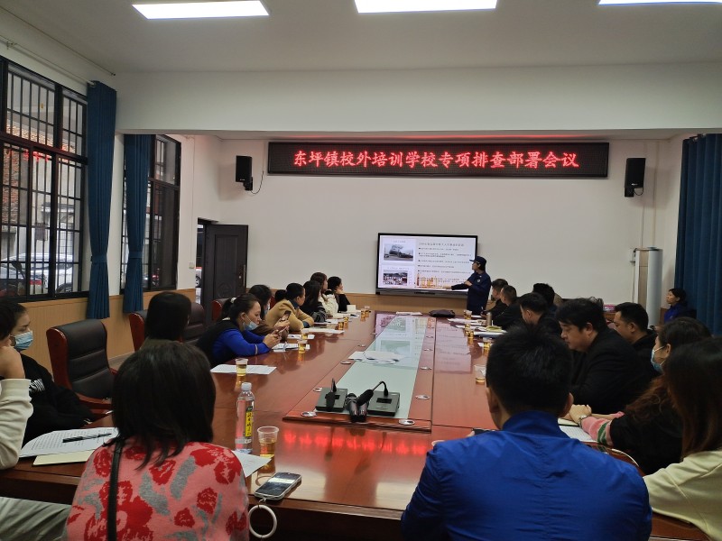 本网讯 10月9日下午3点,东坪镇校外培训机构专项排查工作部署会议在中心学校举行,东坪镇社会事务办副主任刘德刚、县城南区事务中心应急办主任刘刚参加会议,29家培训学校派员参加会议。