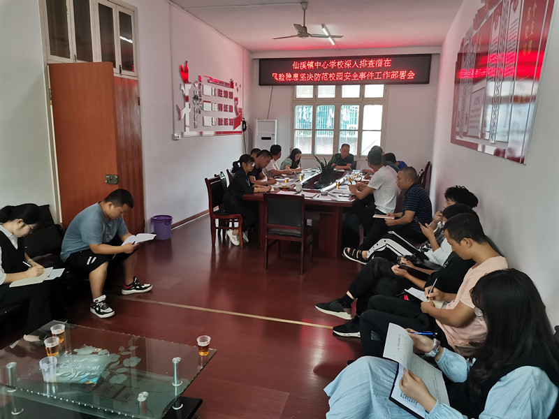 本网讯 9月27日上午,在仙溪镇中心学校三楼会议室召开仙溪镇中心学校深入排查潜在风险隐患坚决防范校园安全事故工作部署会。中心校副校长姜勇平、安全专干肖高峰,辖区内各校校长、安全副校长、安全专干、公民办幼儿园园长和山口文武学校校长参加。会议由仙溪镇中心学校党总支书记、校长刘慈军主持。 姜勇平传达了9月23日和26日安化县教育局安全工作会议精神。组织大家学习《安化县教育局未成年人保护“阳光护蕾”专项整治行动方案》和《安化县教育系统深入排查潜在风险隐患坚决防范遏制校园安全事故行动方案》等文件,并详细解读了未成年人保护“阳光护蕾”月工作清单;肖高峰就开学以来各校的安全工作情况进行了全面细致的总结,同时就做好喜迎二十大前后学生交通安全、消防安全、食品安全、校舍安全、教学安全、防溺水、防性侵、防心理异常事件、未成年人保护、禁毒、电信诈骗、学校疫情防控等安全工作进行了详细的安排和部署。 刘慈军强调:一是全面高度重视,必须做到时时放心不下;二是全面排查隐患,必须做到处处不能放过;三是全面进行整改,必须做到事事放在手上;四是全面履职尽责,必须做到人人必抓安全。