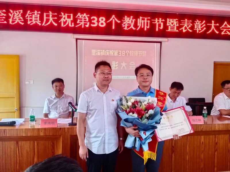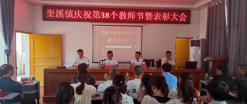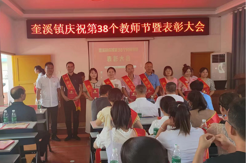 本网讯 秋意渐浓,硕果盈丰。9月9日下午,奎溪镇召开了第38个教师节暨表彰大会,奎溪镇全体教职员工和爱心企业家龚光明参加会议。奎溪镇党委书记邓尔平,党委副书记杨兰林,党委委员、人大主席李伟明出席大会。杨兰林主持会议。 会议在雄壮的国歌声中正式开幕。会上表彰了唐芙蓉等42位“优秀教师”和1位“尊师重教先进个人”,与会领导为获奖个人颁奖。受表彰的优秀教师代表周子嵛、陈媛媛和尊师重教先进个人龚光明依次发言。 中心学校校长唐汝党给全体教育工作者送上了节日祝福。同时他希望广大教职员工,谦虚谨慎、再接再厉、开拓进取,勤奋工作,在本职工作岗位上作出更大的成绩,为奎溪镇教育事业更快更好发展做出新的更大贡献,不断开创奎溪镇教育改革发展的新局面。 邓尔平代表奎溪镇党委、政府向全体教职员工表示节日的问候和崇高的敬意,向荣获表彰的优秀教师表示衷心的祝贺。并提出四点要求:要把立德树人作为教育工作的根本任务;要把改革创新作为质量提升的强大动力;要把培优师资作为队伍建设的核心要求;要把尊师重教作为全社会的责任担当。
