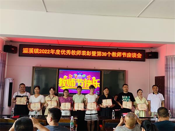 本网讯 9月9日下午,在第38个教师节即将来临之际,滔溪镇中心学校四楼会议室举行2022年度优秀教师表彰会暨第38个教师节座谈会,表彰奖励全镇教育工作中涌现出来的先进个人,激励广大教职员工始终坚守教育初心,进一步增强工作责任感和使命感,齐心协力推动滔溪教育事业稳步向前发展。 出席会议的人员有滔溪镇党委副书记、镇长谢波,滔溪镇党委委员、人大主席杨景宪,滔溪镇中心学校及下属各校(园)行政班子成员,受表彰教师等57人。会议由滔溪镇党委委员、纪委书记王朋祥主持。 大会在雄壮的国歌声中拉开序幕。滔溪镇中心学校总支书记、校长刘忠汇报了一年来的教育教学工作。杨景宪宣读表彰决定。谢波等分别为优秀班主任和优秀教师颁奖。 滔溪镇长乐完小教师蒋智和滔溪镇中学教师张莉萍代表受表彰的20名优秀教师先后发言,分享自己成长的经历,阐述自己对教育的理解,交流教书育人的心得。 谢波在讲话中首先代表党委政府对全镇教师送上节日的祝福,指出今天这些受到表彰的同志是全镇教育系统的优秀代表,对他们进行表彰,既是镇党委、政府对他们工作的肯定与奖励,也是对他们的鞭策和激励。希望受到表彰的同志,继续发扬成绩,再接再厉,再创辉煌。也希望全镇广大教育工作者以他们为榜样,坚守教育初心、担起育人使命,爱岗敬业,甘当人梯,勇于探索,富于创造,勤勤恳恳,无私奉献,为滔溪镇教育事业的发展做出应有的贡献。(通讯员 陈鹏飞)