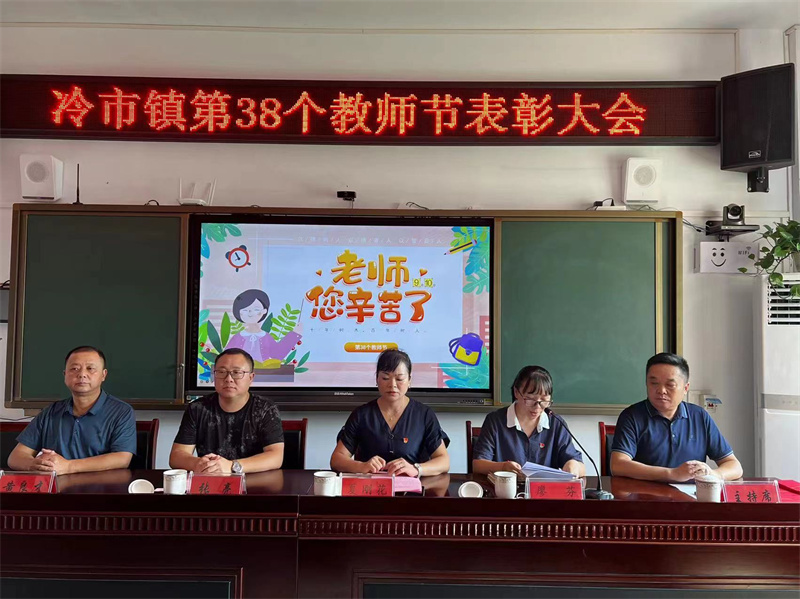 本网讯 9月9日下午,在第38个教师节来临之际。中共冷市镇委员会、冷市镇人民政府在冷市镇完小大会议室举行庆祝第38个教师节暨表彰大会。全镇优秀教师和部分教师代表参加。冷市镇党委副书记、镇长夏刚花、冷市镇党委副书记廖芬出席庆祝表彰大会并为优秀教师颁奖。大会由冷市镇中心学校副校长张志坚主持。 冷市镇中心学校校长张亮致辞。张亮回顾了一年来党政重教和社会捐资助学的典型案例,小结了一年来教育教学取得的显著成绩。张亮强调:一要旗帜鲜明、科学发展,办人民满意的教育。二要坚定信念,牢记使命,当人民满意的教师。三要解放思想,心怀梦想,做幸福快乐的自己。张亮指出:坚持内涵发展,在教育质量上让家长满意;坚持安全发展,在学校安全上让社会满意;坚持理性思维,在规划布局上让时代满意。 廖芬宣读了表彰决定。表彰了一批表现优秀教师、优秀班主任、中考工作先进个人和优秀教育工作者共38人。 夏刚花代表镇党委、政府向受表彰的优秀教师表示了热烈的祝贺,向全镇教师和教育工作者表示了节日的慰问。她肯定了冷市近年来教育教学取得的可喜成绩,并对冷市的教育人提出了要切实增强使命感和紧迫感,进一步扬师德、强师能、铸师魂,努力把该镇教育质量、办学水平提升到一个新高度的要求。她希望:广大教师争做为人师表的楷模,做敬业乐教、满怀真情爱学生的模范,做笃学严谨、刻苦钻研强本领的模范,做为人师表、以身立弘扬扬师德的模范。不断提高教育教学质量,不让学生输在起跑线上,让学生赢在冲刺点上,充分利用信息技术资源,共同维护学校安全稳定,把每一所学校都建成平安、卫生、文明、和谐的校园。(通讯员 李建新 李秋雁)