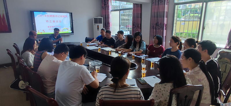 本网讯 9月2日下午,奎溪镇中心学校2021年新聘教师转正座谈会在一楼会议室召开。17名青年教师,奎溪镇中心学校全体班子成员参加会议,会议由中心学校教导主任唐友兵主持。 座谈会上,17位转正教师从教育教学、班级管理、职业规划等方面回顾了一年来的成长和收获,并对未来进行了展望。与会人员一致认为新教师们工作认真负责,一丝不苟,关心学生,团结友善,业务能力有很大的提升,能胜任教师岗位工作,符合转正的要求。大家一致同意他们如期转正。 奎溪镇中心学校校长唐汝党语重心长地作了总结讲话,他肯定了老师们在实习期的良好表现,并对他们提出了三点希望:珍惜职业,成为优秀的人民教师;追求卓越,努力提升自己的专业素养与工作水平;做好规划,争做骨干教师。