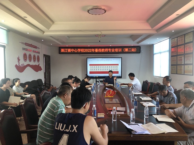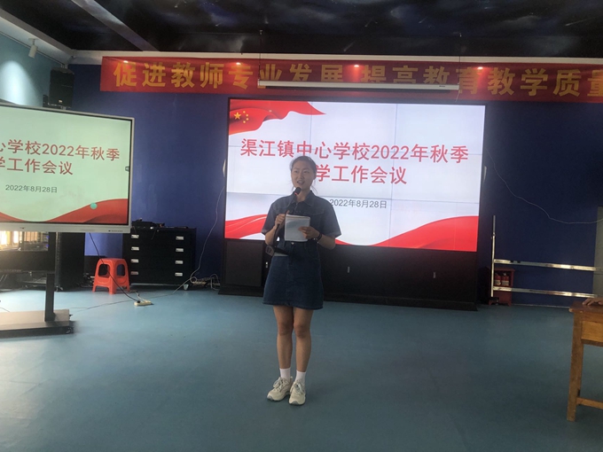 本网讯 8月28日下午,在渠江学校智慧教室,新教师王妍正在进行自我介绍。最后她在表演才艺前还不忘告诉大家“我还单身哦”,引得大家会心一笑。这是渠江中心学校2022年秋季开学工作会议上的一个场景。至此,为期6天的暑假教师培训进入高潮,全镇教师经过培训,整装待发,准备以满腔热情投入到新学期的工作中去。