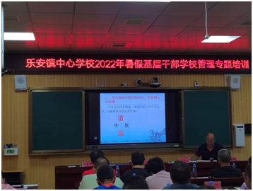 本网讯 8月26日上午,乐安镇中心学校47名基层干部参加暑假培训,标志着该镇2022年秋季开学拉开帷幕。 培训会议由中心学校校长蒋吉贵主持。本次培训以学校管理中文化引领的重要性为主题,由中心学校督学周建明主讲。周建明以《弘扬文化提内涵,踔厉奋发谱新篇》为题,结合时代主题和乐安教育实际,做了深入浅出的讲座。他认为干部管理能力的提升,既要用中华传统文化打牢底子,又要用红色文化擦亮底色,更要以争创优秀校园文化给学校增加底气。还通过自己从一名普通教师到各种岗位历练的经历现身说法,阐释了一名基层干部做事重要、做人更重要的道理,提出了制度治校重要、文化治校更重要的办学理念。 乐安镇党委书记龙润苗应邀请参加培训,全程聆听后,她表示: 一直以来,乐安教育注重内涵管理,均衡发展重行动,质量提升有成效,这些都得益于乐安一线教师的辛勤付出,得益于校长们和干部们的率先垂范。她对干部们在新的学年里提出了更高的要求,并号召全体乐安教教育人要弘扬工匠精神,不断追求卓越,办出有特色的乐安教育来。(通讯员 周正才)