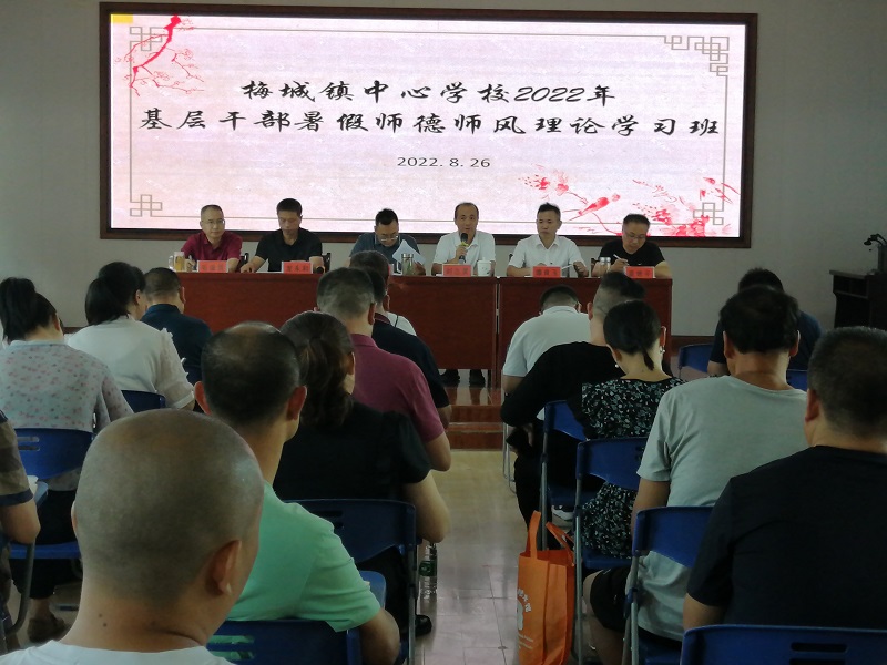 本网讯 8月26日,梅城镇中心学校举行暑假师德师风理论学习班,全镇各中小学校、中心幼儿园基层干部共80人参加学习。 中心学校党总支副书记刘志灵主持培训会议。中心校副校长龙永和、谭良玉、夏世平、毛设贤分别就政工人事、师德师风建设、学校安全、教育教学进行总结,并对新学期工作进行详细安排与部署。 中心学校党总支书记、校长贺荻作教育工作报告,要求全镇教育人团结一心,发扬敢闯,敢拼的精神,认真完成年度各项教育目标。做到党建工作有实效、教育教学工作有新招、后勤保障工作有力度、学前教育有推进。同时强调全体基层干部要以高度的政治责任感、良好的工作状态、扎实的工作作风做实做细开学的各项工作,以实际行动迎接党的二十大胜利召开。