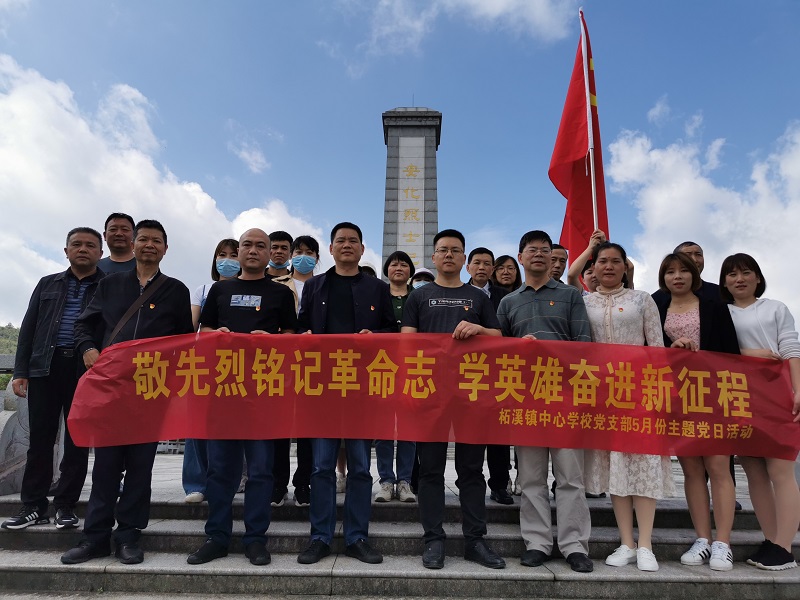 本网讯 5月20日下午1点,柘溪镇中心学校党支部组织党员、入党积极分子、入党申请人,群众代表等20多人,前往云台山英雄公园、安化烈士纪念碑开展“敬先烈铭记革命志 学英雄奋进新征程”五月主题党日活动。 来到安化民企云上茶旅集团,听公司领导介绍企业如何发展壮大和推广安化黑茶产业所付出的努力和艰辛。在会议室,中心学校党支部书记、校长刘良刚为全体成员上题为《强基固本 整建提质 以新风正气喜迎党的二十大》党课,党课从世界格局大背景、乡村振兴好时机、喜迎党的二十大开始,联系我镇近年来取得的成绩和存在的不足,要求党员教师一定要正邪分明,扛起领先大旗,做好表率。一定要加强意识形态工作,筑牢思想防线;提高安全意识,筑实安全防线;压实质量意识,筑稳提质建设。 在云台山英雄纪念碑前,全体党员向英雄纪念碑敬献了花篮、三鞠躬向英雄致以崇高敬礼。在烈士陵园前,那一排排革命先烈墓碑让人深深感慨今天的幸福生活来之不易,是革命先烈们用生命和热血换来的。大家纷纷表示一定要珍惜今天这来之不易的幸福生活,要牢记英烈遗志,传承红色基因,汲取奋进力量,向英雄学习,不断自我提升,在教书育人平凡的工作岗位中书写自己绚丽人生。(通讯员:仇一平)