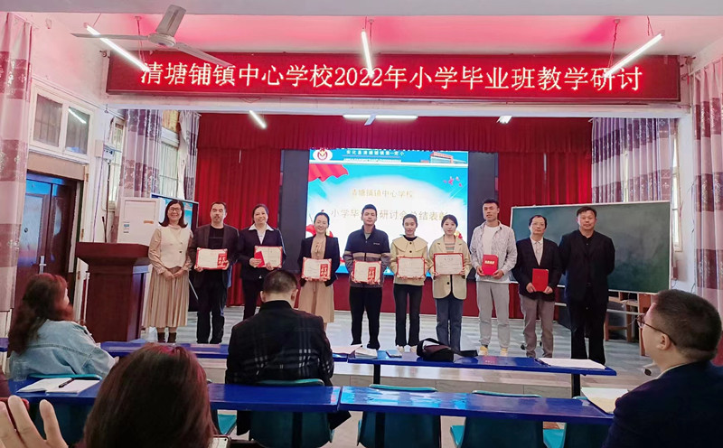 本网讯 5月10日,清塘铺镇中心学校举行小学毕业班教育教学研讨交流活动,镇中心学校全体成员、全镇各校校长、教导主任和所有小学毕业班任课教师等60余人参加活动。 活动由镇中心学校副校长喻拥军主持。与会人员首先观摩了王叶辉、肖琎、袁炯、熊甲轩、高婷、康媛老师分别主讲的六年级数学及道德与法治复习研讨课,采用教学比武的形式进行,由中心学校领导与各校校长或教导主任担任评委,依据有关课堂教学评价标准对每位教者进行量化评分。接着分教研组进行了评课研讨、互动交流。大家围绕如何全面提高六年级课堂复习效率,全面提高小学毕业班教学质量而畅所欲言,各抒己见,共同探讨良策。然后分别听取了刘道兰、周远兴老师的讲座,介绍了班级管理经验,重点畅谈了毕业班学生管理的方法与策略及对小学毕业班各学科进行了学情分析与复习经验交流。 镇中心学校有关领导对本次活动进行了总结讲话,并举行了颁奖仪式。活动最后喻拥军作了题为《齐抓共管抓好毕业班,凝心聚智全面提质量》的主题讲话,要求各校领导与所有小学六年级教师要做到:一是精细管理,确保一方平安;二是明确目标,理清复习思路;三是提高效率,打造高效课堂;四是多措并举,全面提高质量。(通讯员 罗新初 杨卫)
