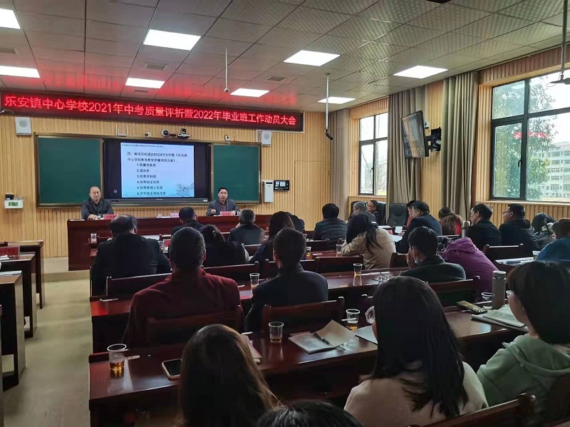 本网讯 3月18日下午,乐安镇中心学校在乐安镇中学云录播室召开2021年中考质量评析暨2022年年毕业班工作研讨会,中心学校领导班子成员,辖区内各中小学校校长、教导主任、六、八、九年级科任教师等共44人参加。 会上,乐安镇中心学校副校长龚新举作了题为《凝心聚力向未来,脚踏实地抓质量》的发言,用一组组有力的数据对2021年中考、县局抽考、全镇统考质量进行分析,客观总结了2021年中考,统考工作;根据2022届毕业班现状,提出了备考指导意见。 乐安镇中心学校副校长金竟成宣读了《乐安镇中心学校关于2021年度教育教学质量优胜单位和先进个人的表彰通报》。各校毕业班优秀教师代表做了备考经验分享。各学校校长作了表态发言,一起交流备考经验和措施。 最后,乐安镇中心学校校长蒋吉贵对2022年中考、抽考作了题为《坚定目标,勇毅前行,鏖战百日,再创佳绩》的报告。他希望,全体教师进一步明确目标,以目标为动力,牢固树立质量意识,增强责任意识和忧患意识,抓实每个环节,拿出百倍的勇气和信心,主动担当,积极作为,鏖战百日,再创乐安教育新佳绩。