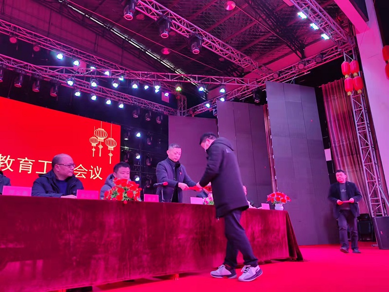 本网讯 2月13日,马路镇中心学校在大剧院礼堂召开2022年马路镇教育工作会议,对新一年的教育工作进行安排部署。安化青少年活动中心主任唐祁安、马路镇人民政府副镇长陈洋、马路镇全体在职教师、退休教师代表、民办学校主要负责人等共计二百四十余人参加大会。会议由中心学校责任督学伍玉华主持。 马路镇中心学校党总支书记、校长黄攀峰作了《紧扣时代主旋律,思考发展新思路,担当教育新使命,奉献教师新作为,为实现优质均衡目标树立马路教育品牌》的工作报告,他首先认真回顾了2021年的工作成绩与不足,从党建引领、立德树人、依法治校、质量强校、精细管理五个方面提出新要求;最后指出全镇教育人要强化政治意识、责任意识、服务意识,提振精神,真抓实干,奋力争取马路教育的更大突破。 中心学校副校长王健结合县局教育会议精神,以《教育路上努力奔跑,做教育追梦人》为主题,从“突出质效,狠抓教学常规的提升;突出精细,狠抓管理常规的提升;突出培训,狠抓研训常规的提升”三方面提出了具体要求。同时还详细安排了开学工作。 唐祁安在会上充分肯定了马路一年来在教学质量、教育管理等方面取得的进步与成绩,并鼓励年轻教师,要做一个“有目标、思想敏锐、乐于学习、善于思考、品德高尚、充满幸福感”的教师,让工作成为自己前进的方向与动力。 据悉,会议还对2021年度学校目标管理工作考核情况进行了通报,对获得一、二等奖的单位颁发了奖牌;同时各学校负责人还向中心学校递交了“师德师风”与“安全工作”责任状。