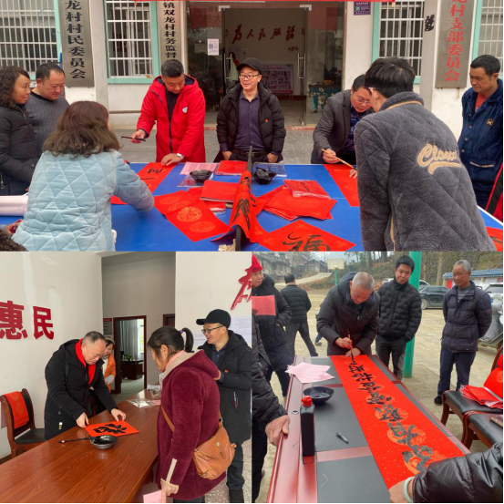 本网讯 “2022年是虎年,我们衷心祝福双龙村全体村民,在新的一年里能够福虎生威,好运多多,幸福日子过得美美满满......”。1月20日,在烟溪镇双龙村“过大年 送春联”义写春联现场,县教育局驻该村乡村振兴工作队负责人和书法爱好者们由衷地祝福村民。 春节将至,为了让村民过一个祥和热闹的春节,县教育局机关的书法爱好者应邀前来义务写春联、送春联。在村委大楼,饱含着美好祝福的春联,行书、楷书、隶书等多种字体各显神韵。现场书写的200多副春联,红红火火,墨香扑鼻,透出节日的味道,“福”字表达出对村民浓浓的新年祝愿。 文化下乡送春联,在双龙村还是头一回,拉近了党群关系,为乡村振兴更添了一笔色彩。手捧春联的村民,脸上洋溢着幸福的笑容。(通讯员 王小艳)