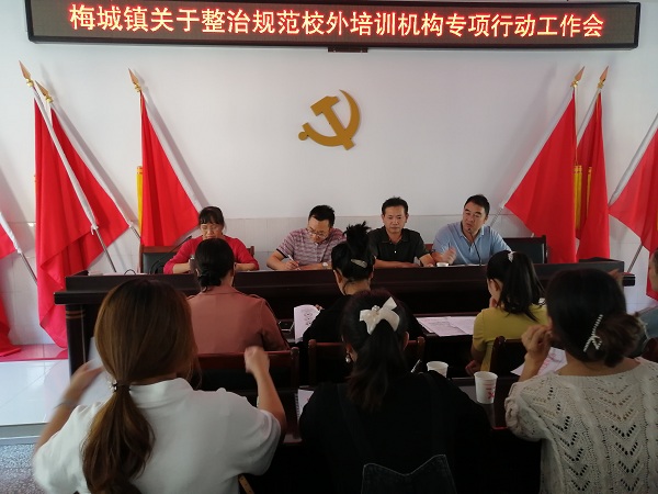 本网讯 9月29日,梅城镇中心校组织全镇24家校外培训机构负责人召开会议,部署安排校外培训机构“整治规范月”专项行动工作。 梅城镇中心学校校外培训机构工作负责人胡赛华传达县局会议精神,解读了教育部、省教育厅的相关文件。中心校副校长谭良玉组织学习梅城镇人民政府关于开展校外培训机构专项整治行动的通知,并强调相关工作纪律与要求。中心校党总支书记、校长贺荻联系当前国家教育方针,就落实“双减”政策,深刻剖析了开展专项整治行动的背景和意义,希望各培训机构积极配合行动,以实现还学生快乐,轻家长负担,促社会和谐的工作目标。 会上,各位培训机构负责人向贺荻递交了行动承诺书,均表示会严格按照相关部署认真落实专项行动要求,为确保梅城教育的健康发展履行好自己的职责。