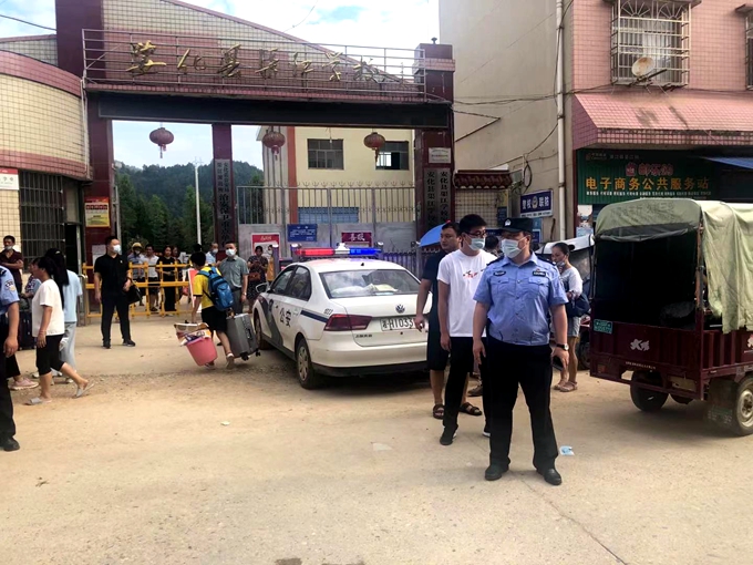 本网讯 9月1日,新学期开学第一天,渠江镇党委副书记、镇长罗震宇,分管教育工作的副镇长刘强,渠江镇派出所所长谌峥嵘、渠江镇应急管理办公室副主任夏冠等一行四人亲自和校门口维持秩序,疏导交通,并就学校新学期开学工作开展专项检查。