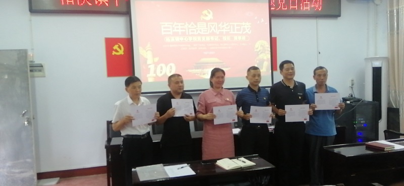 本网讯 6月28日下午,柘溪镇中心学校党支部在镇完小会议室开展“党旗在基层一线高高飘扬”7月主题党日活动。全体党员、入党积极分子、入党申请人、群众代表共18人参加。 全体与会成员首先观看了《一刻即一生》《毛泽东用自己的革命经历告诉全党什么是“实事求是”》两段党史红色视频,紧接着新党员邓美婷同志在党旗前进行了庄严的入党宣誓,随后支部书记黄攀峰向过集体政治生日的党员赠送了“党员政治生日纪念卡”,并送出祝福、提出希望,要求全体党员教师要强化身份意识、责任意识,在传递组织关怀、期待和要求的同时,进一步激励自己不忘初心、牢记使命,一定要让党旗在基层一线高高飘扬。全体党员围绕“学史力行”的主题,畅谈“政治生日”感言,回忆了自己入党的过程,讲述了对于初心的理解认识和自己的初心故事。全体党员在支部书记黄攀峰同志带领下,面向党旗,重温入党誓词,重温入党初心。最后还在活动中完成“光荣在党五十年”纪念章首次颁发工作。(通讯员:仇一平)