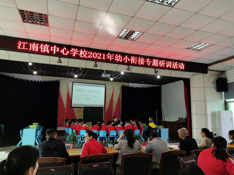 本网讯 4月30日,江南镇中心学校举办了“解读幼小衔接,守护幸福童年”的专题研训活动,参加此次会议的领导有:安化县教育局学前教育股股长刘定中、副股长蒋方芳,江南镇中心学校副校长李新民以及全镇各园园长、老师。 本次活动分三个流程进行:一是通过江南镇中心园老师李锦超执教的大班科学《有趣的点子图》教学观摩,进行教学研讨,联系生活实际,如何运用已有经验进行创编应用题,丰富幼儿的想象力与创造力;二是区域观摩,中心园打造园本文化,以围绕“礼、知、操、趣”四个方面,分楼层进行展示,区域材料操作性强,幼儿在真情境、真游戏过程中乐此不疲;三是中心园园长廖迎亚带来的《为萌娃们的“幼小衔接”做好科学护航》专题讲座,针对幼小衔接的现状分析,以及如何推进幼儿园与小学科学衔接的指导意见做了阐述与讲解,做好幼小衔接工作,不仅是幼儿园单方面的工作,我们更要引导家长正确面对幼小衔接问题,科学育儿。 环境对幼儿的成长和发展起着不可忽视的作用,刘定中说:“做好环境创设,不仅是简单地好看,更要实现其教育价值。”良好的环境创设用四个词进行概括:生态、精致、灵动、特色。根据自身资源、家长资源、周边文化,打造适合本园所的园本特色环境创设。 最后,李新民进行活动总结,对各园所提出五个建议:一是教师要加强自身素养,多学习,多阅读;二是园所要多组织各种活动,开展业务知识培训,提高教师专业技能;三是.鼓励老师参与教科研;四是园所加大投入,提高老师待遇,稳定师资队伍;五是加强园所安全工作,时刻警钟长鸣。 本次活动,该镇教师享受了一场精神文化大餐。(通讯员 陈旭)