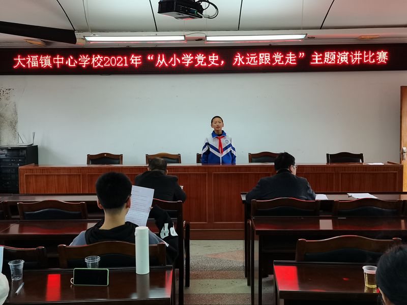 本网讯 4月12日上午大福镇中心学校举办了以“从小学党史 永远跟党走”为主题的演讲比赛。 本次活动,共有9名选手通过校级初赛顺利晋级中心学校决赛。 比赛中,各校选派的参赛学生用激情澎湃的语言、真挚热切的情感,缅怀党的百年光辉历程,讲述身边的英模故事,并结合自己学习和亲身感受,从热爱学习、坚定理想信仰、肩负时代使命责任等多个角度、多个层面讲述了自己对学党史、跟党走的理解和看法,充分展示了新时代中小学生积极正面、健康向上的形象和风采。 少年强则国强,少年进步则国进步。通过此次活动,同学们更加坚定了爱党的信心,牢记使命,争做新时代的爱国少年。(通讯员 黄鹤)