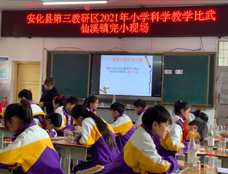 本网讯 4月8日上午,安化县第三教学区域科学教学比武在仙溪镇完小举行,活动由仙溪镇中心学校副校长龚新举主持,仙溪镇、长塘镇、大福镇所有相关领导、科学教师参与。 该区域每镇各派1位科学教师参加了本次教学比武。赛课前,各参赛教师针对本年级学生已有的科学认知基础,确定了教学课题,进行了充分的赛课准备。赛课时,教师们以精心的课堂设计,丰富的实验材料准备,生动有趣的课堂教学,亲和幽默的教学语言,引导孩子们徜徉在科学的海洋,探索科学的奥秘! 此次赛课评委团由仙溪镇、长塘镇、大福镇领导及教研组老师组成。赛课后,经评委团评判,仙溪曹丹获得一等奖 ,长塘、大福宁次云、马婷两位老师获得二等奖。 最后,龚新举针对每一节课的教案和课堂教学的优点以及不足进行了点评,让参赛的老师们获益良多。他指出,本次科学教学比武活动,有助于提高教师科学教学水平,有利于促进教师的专业化成长,有利于孩子们在老师的引导下,在实验操作中了解科学,发现科学,从而热爱科学,从小培养孩子们的科学探究精神。 |