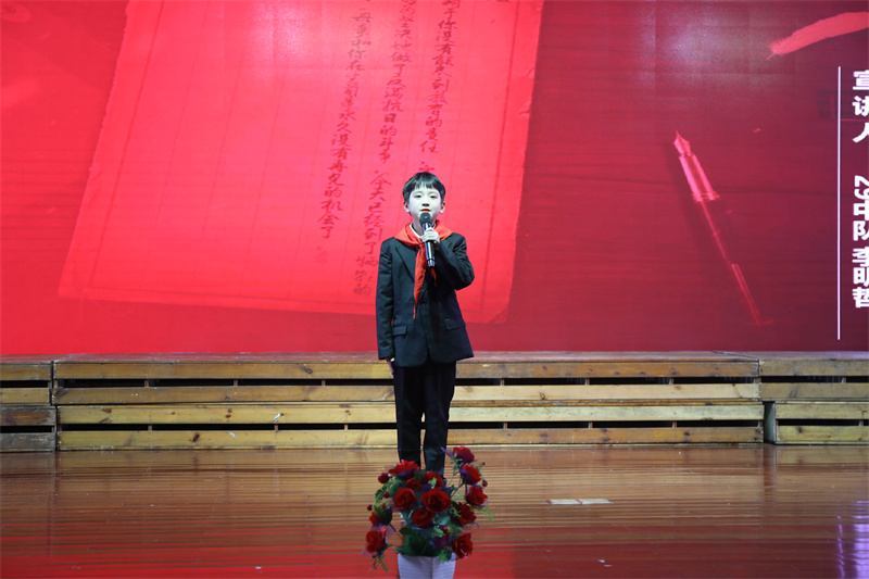 本网讯 近日,安化县第一芙蓉学校开展了“红领巾爱祖国”庆元旦迎新年暨第五届芙蓉好少年“六个一”系列活动。活动包括经典诵读比赛、红色故事演讲比赛、红歌比赛、党史知识竞赛等多种比赛形式,营造了浓厚的红色文化氛围。 经典诵读比赛中,学生们以饱满的热情诵读了《满江红》《红船,从这里起航》等经典篇章。他们声音洪亮,情感真挚,仿佛将大家带回了那个革命激情燃烧的年代,赢得了在场观众的阵阵掌声。