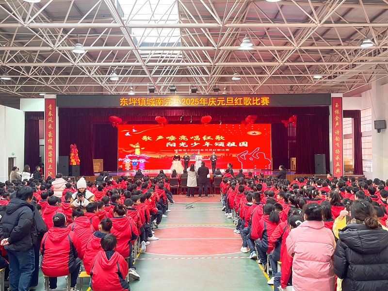 本网讯 12月27日,东坪镇城南完小五年级全体师生会聚一堂,开展“歌声嘹亮唱红歌 阳光少年颂祖国”庆元旦红歌比赛,以激昂澎湃的歌声喜迎新年的到来。