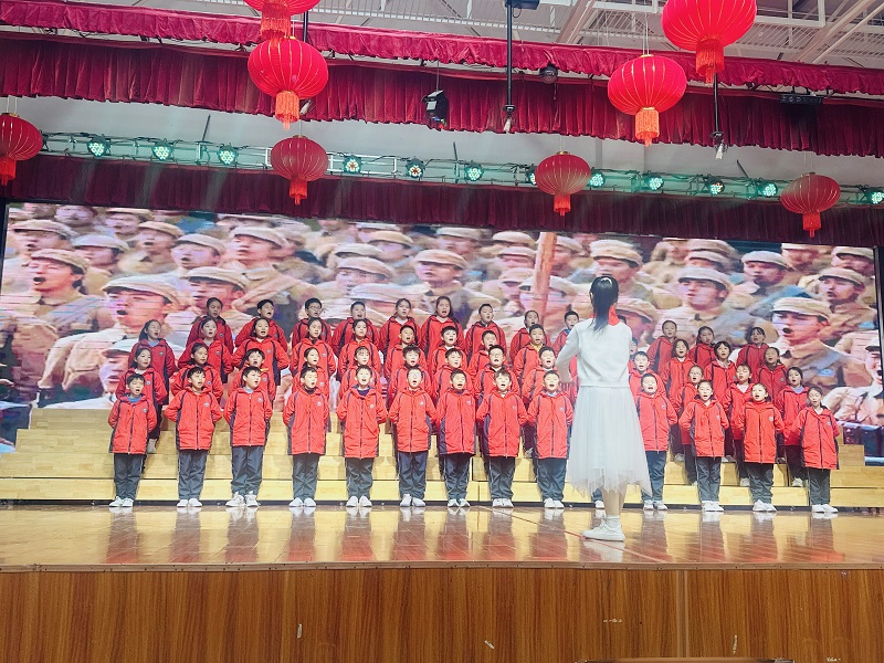 活动在校长张密田的致辞中拉开帷幕。张校长激励同学们传承红色精神,铭记历史使命。随后,各班级按序登台,以大合唱的形式展开精彩角逐。《团结就是力量》《红星闪闪》《少年先锋队队歌》等一首首经典红歌响彻校园。同学们个个精神抖擞,身着整齐服装,在指挥员富有感染力的动作引领下,用嘹亮歌声展现蓬勃朝气与爱国热忱。