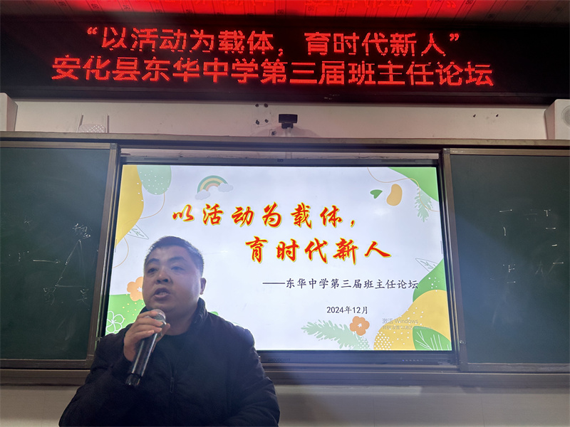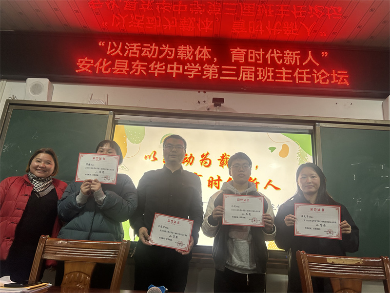 本网讯 12月6日,梅城镇东华中学在学校大会议室成功举办了“以活动为载体,育时代新人”为主题的第三届班主任论坛。 论坛活动由德育副校长肖智主持,并发表了热情洋溢的开幕词。随后,来自不同年级的六位班主任代表分别上台围绕论坛主题,结合自身的实际工作,分享了各具特色的班级管理经验和育人方法。高超老师的《以生为本,做有温度的班主任》深情阐述了班主任应如何关注学生的全面发展,用心倾听学生的声音,为学生的成长倾注温暖与关爱。吴敏老师的《春风化雨育桃李,润物无声显初心》则生动展示了班主任在细微之处所展现出的教育智慧与深沉爱心,赢得了在场听众的热烈掌声。其他几位老师的发言也各具特色,精彩纷呈。经过评委小组的认真评选,最终吴敏和吴俭君两位老师凭借出色的表现荣获一等奖,其他四位老师获二等奖。 论坛期间,肖智还特别组织了学习班主任管理细则的环节,帮助班主任们进一步明确工作职责和要求,提升专业素养,他对班主任们的辛勤付出和取得的显著成绩给予了高度肯定,并鼓励他们继续勇于探索、不断创新,为培养德智体美劳全面发展的社会主义建设者和接班人贡献更多力量。 最后,该校党支部书记、校长喻彦平对此次论坛的成功举办表示热烈祝贺。他认为,此次论坛不仅为班主任们提供了一个展示自我、交流学习的宝贵平台,也为学校进一步加强班主任队伍建设、提升立德树人质量奠定了坚实基础。未来,学校将继续致力于推动教育改革与创新,为培养更多优秀人才贡献力量。 初审初校:曹靖阳 复审复校:肖智 终审终校:喻彦平