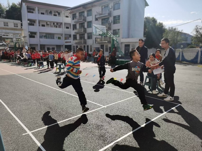本网讯11月29日,大福镇新桥完小迎来了一场别开生面的冬季趣味体育运动会。 在庄严的升旗仪式后,运动会正式拉开帷幕。本次运动会共设置了多个趣味比赛项目,包括体操比赛、一分钟跳绳、滚铁环、球拍运夹乒乓、滚轮胎接、50米竞速、拔河等。这些项目不仅考验了同学们的速度和力量,还锻炼了他们的团队协作能力和反应能力。 比赛开始,篮球场上彩绳飞舞,运动员们个个龙腾虎跃,尽显身手。跑道上,一个个小小的身躯如同离弦的箭,奋力向前冲刺。滚轮胎比赛中,随着裁判的一声哨响,小选手们奋力推动着轮胎,轮胎在他们的手中仿佛有了生命,时而翻滚跳跃,时而平稳前行。小选手们的脸上洋溢着汗水与笑容,他们的动作敏捷而协调,仿佛在与轮胎进行着一场欢快的舞蹈。现场加油声、欢呼声、掌声此起彼伏,整个校园沉浸在一片欢乐的气氛中。 该校校长肖毅方对此次运动会给予了高度评价,他表示,学校将继续落实“阳光体育运动”和“五育并举”的教育理念,进一步加强体育设施建设,优化体育课程设置,为学生们提供更多更好的体育锻炼机会和平台。