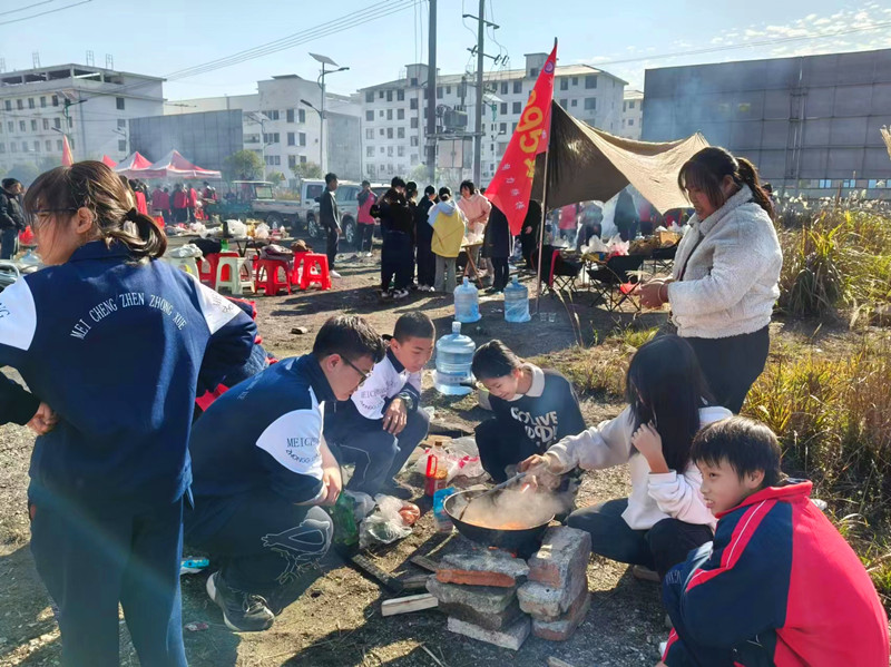 本网讯 11月29日,阳光正好,微风不燥,梅城镇中学组织了一场别开生面的学生野炊活动,让同学们暂别书本与教室,投身自然怀抱,于烟火缭绕间体验别样的校园生活乐趣,收获成长与友谊。 抵达郊外的野炊营地后,野炊正式拉开帷幕,平日里专注于学习的同学们,瞬间变身 “厨房小能手”。生火环节便充满挑战,有的小组熟练地找来干燥树枝、树叶,搭起简易 “炉灶”,打火机轻轻一点,火苗便欢快地蹿了起来;而有的小组则状况百出,被烟熏得眼泪直流、咳嗽不断,好在同学间互帮互助,有经验的同学手把手教学,不一会儿,各个营地都升起袅袅炊烟。 切菜、洗菜、配菜,同学们分工明确,配合默契。准备工作就绪,大厨们登场,“嗞啦” 一声,油入热锅,瞬间激活了这场美食盛宴。番茄炒蛋堪称经典 “热门选手”,红与黄在锅中激情碰撞,酸甜滋味弥漫开来;可乐鸡翅色泽红亮,酱汁在慢炖中愈发浓稠,裹满每一寸鸡肉,引得旁人垂涎欲滴;还有那朴实却美味的清炒土豆丝,在刀工精湛的同学手下,土豆化身细丝,锅中翻炒几下,撒上葱花,清香扑鼻。 期间,欢声笑语不绝于耳,大家一边烹饪,一边分享着校园趣事、生活点滴,平日因课业繁忙稍有疏离的同学情谊,在这烟火升腾中愈发深厚。老师们也穿梭在各小组间,时而指导厨艺,时而参与调侃,师生情谊此刻也如那锅中美食,在温暖氛围里 “升温”“入味”。 随着一道道菜肴出锅,野餐垫上摆满丰盛成果,荤素搭配、色香味俱全。同学们围坐一起,品尝着亲手烹制的美味,每一口都饱含辛勤付出与满满成就感,简单的饭菜在此时有了别样滋味。饭后,大家自觉清理场地,将垃圾打包带走,践行环保理念,让这片自然之地依旧保持最初的纯净美好。 初审初校:蒋志球 复审复校:李德良 终审终校:喻选民